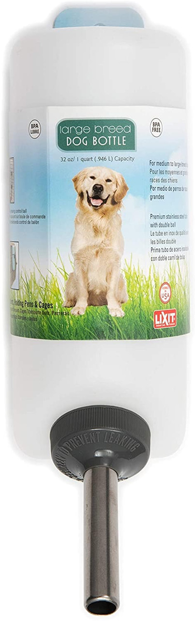 This is a wonderful product for those pets bound for a long trip, whether in a cage in a car or in the cargo hold of an airplane. The pet crate water bottle is available in 2 sizes: small and large. The small has a 16 fluid ounce capacity, equivalent to 1 pint. The large has a 32 ounce fluid capacity, the equivalent of 1 quart. ***We meet or beat Amazon pricing